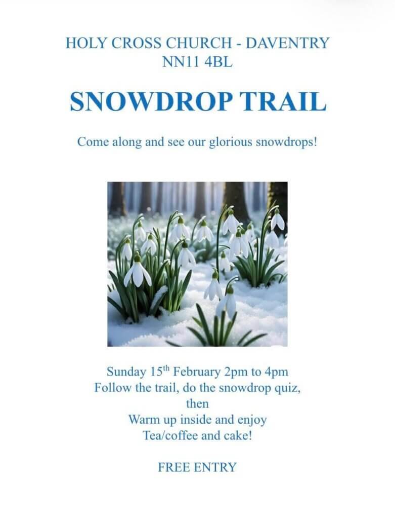 Saturday 15th is the Holy Cross Snowdrop Trail. Between 2-4pm follow the trail and do the quiz, refreshments available.